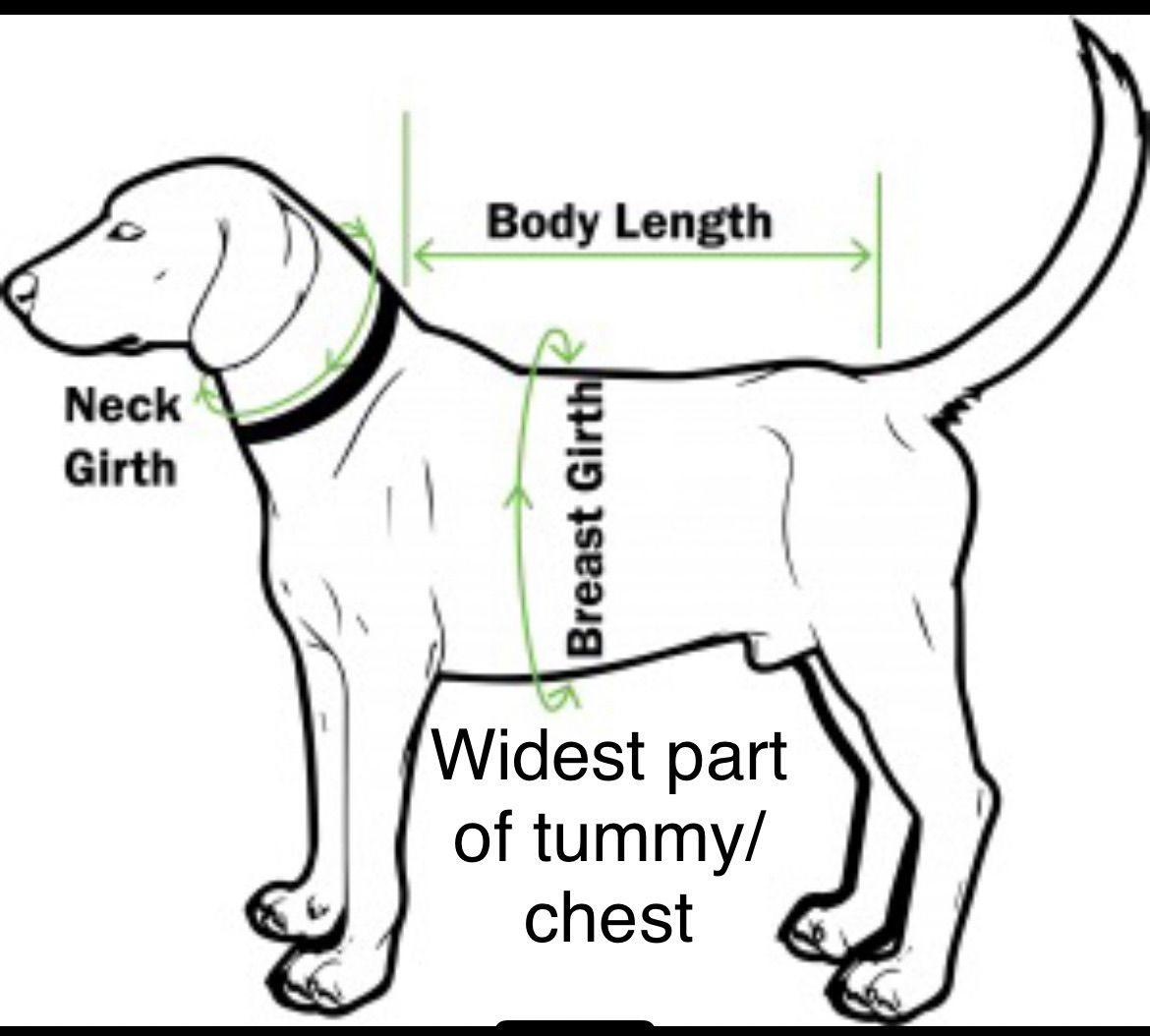 Please measure your furry friend's chest (the widest part) to get the correct size. The length and neck measurements are for an indication only. The jacket does not need to cover your pet's length entirely to be effective